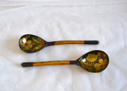 Handbemalte russische Folklore Holzlöffel (2 Stück