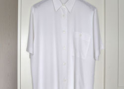 Bluse Kurzarm weiß, kleine schwarze Punkte